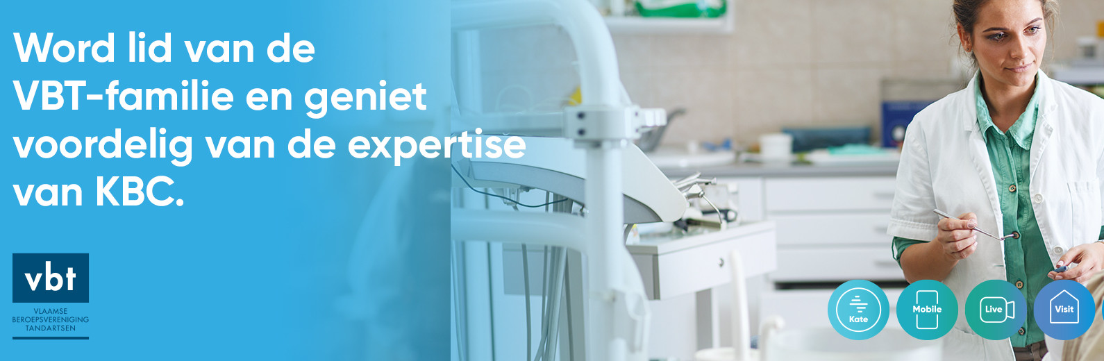 KBC Verzekeringen sloot een unieke samenwerkingsovereenkomst af met de Vlaamse Beroepsvereniging Tandartsen (VBT).Samen bieden we startende tandartsen enkele voordelen.